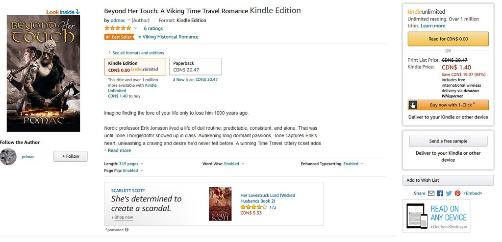 November 11, 2020 Amazon #1 Best Seller Viking Time Travel Romance in Canada